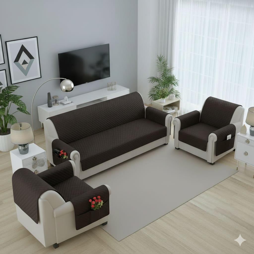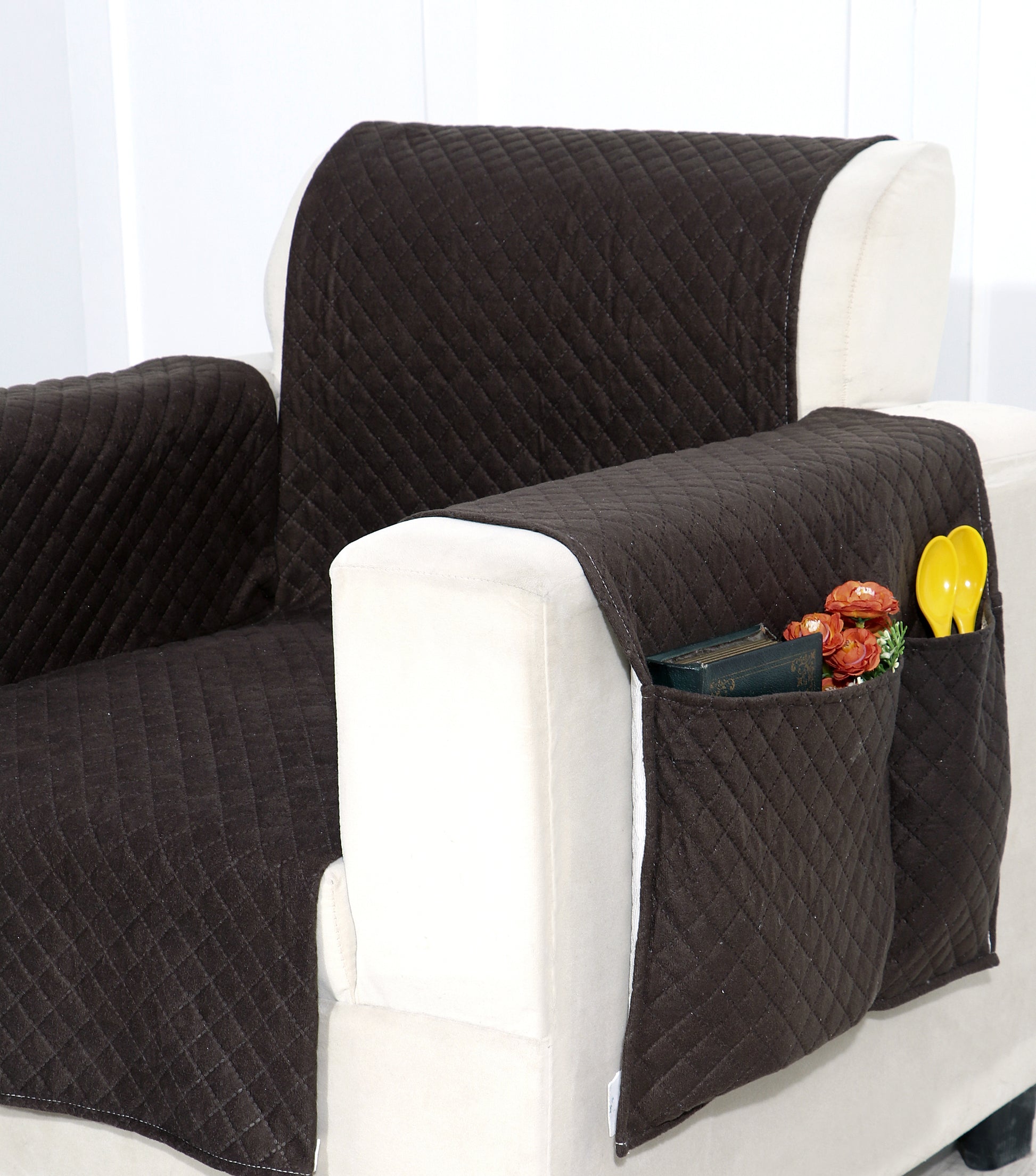 FABRIGAANZA Quilted Sofa Cover | Premium Armchair Protector with Anti-Slip Backing and Side Pockets, Soft & Washable Fabric | Ideal for Homes with Pets, Kids, Daily Use - Solid Brown